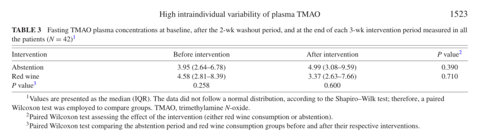 最后,与我们最初的假设相反,我们没有观察到血浆TMAO浓度下降的证据,部分原因是其个体内部的变异性。