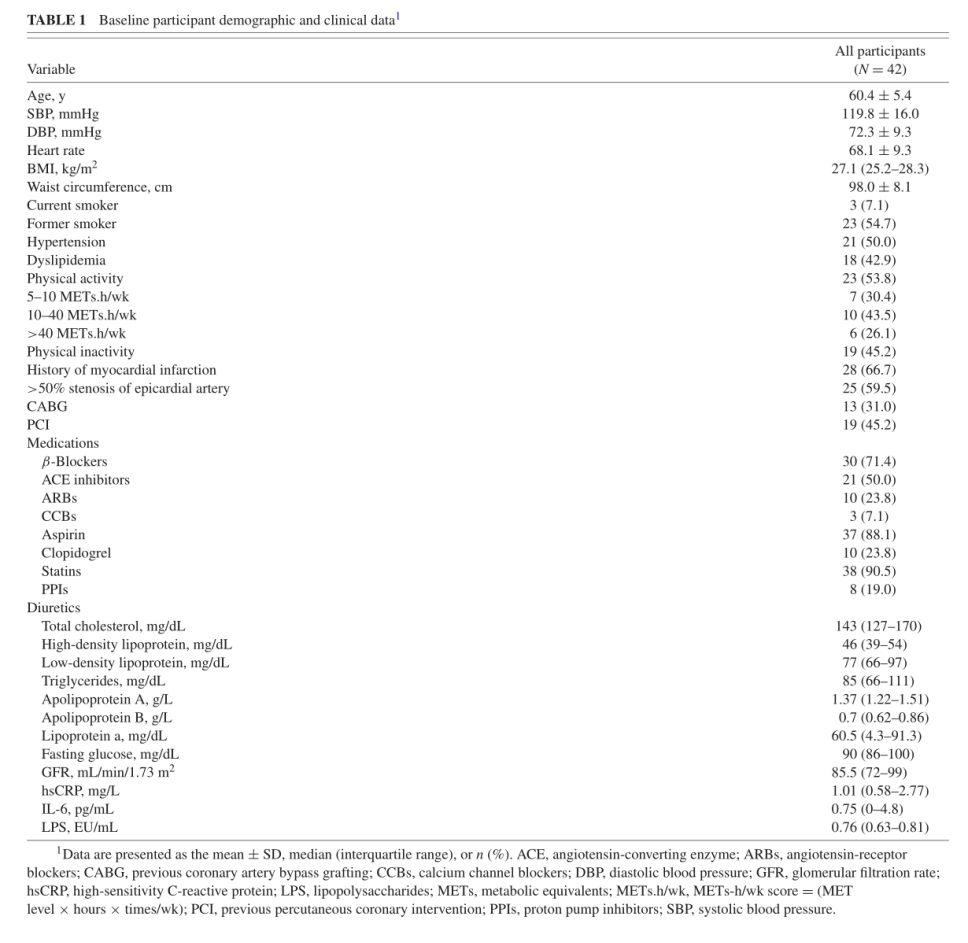 这项研究表明,在年龄在46岁到69岁之间(中位数BMI为27.1)、冠心病稳定的男性患者中,短期、适度服用RW并不会降低TMAO浓度。