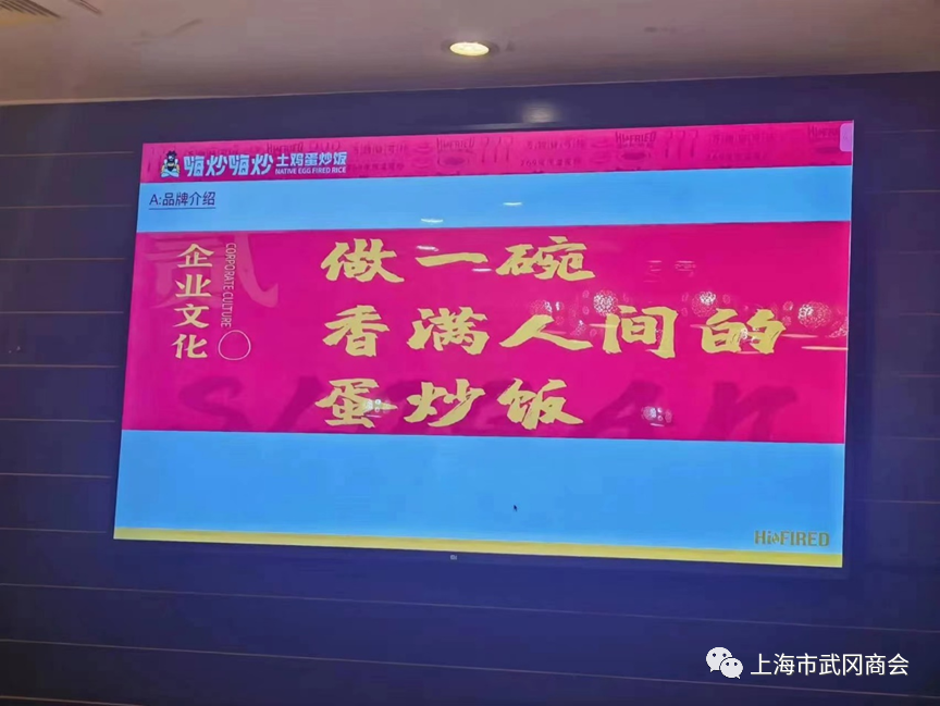 本次活动既是推心置腹的茶话会,也是在商言商的项目推介会。经精心遴选,本次活动特推荐常务副会长戴小勇的“嗨炒嗨炒”蛋炒饭品牌,拟在商会平台做首次实验示范性项目介绍,促进商会内部优质资源融合。常务副会长戴小勇向大家介绍了品牌文化、核心竞争力、合作模式等详细的演示,讲述每一个人孩童的故事——做好一碗香满人间的蛋炒饭。