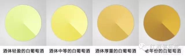 (二)白葡萄酒:酒液颜色一般为黄绿色、禾杆黄、柠檬黄或者金黄色的葡萄酒。