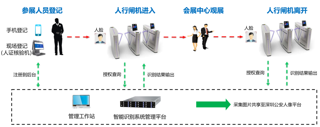 对于超大型会展中心来讲,因为参展人流量极大,如何快速准确核验身份通行、优化参展人员体验,如何保障展会高效、安全运行,一直是会展运营方面临的突出问题。