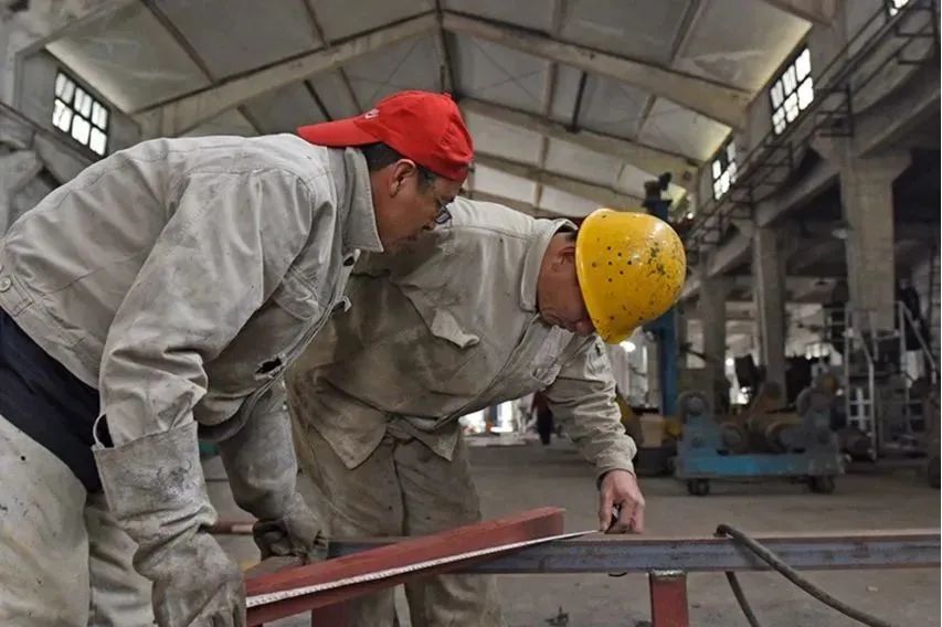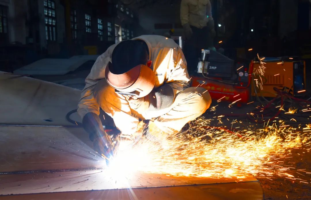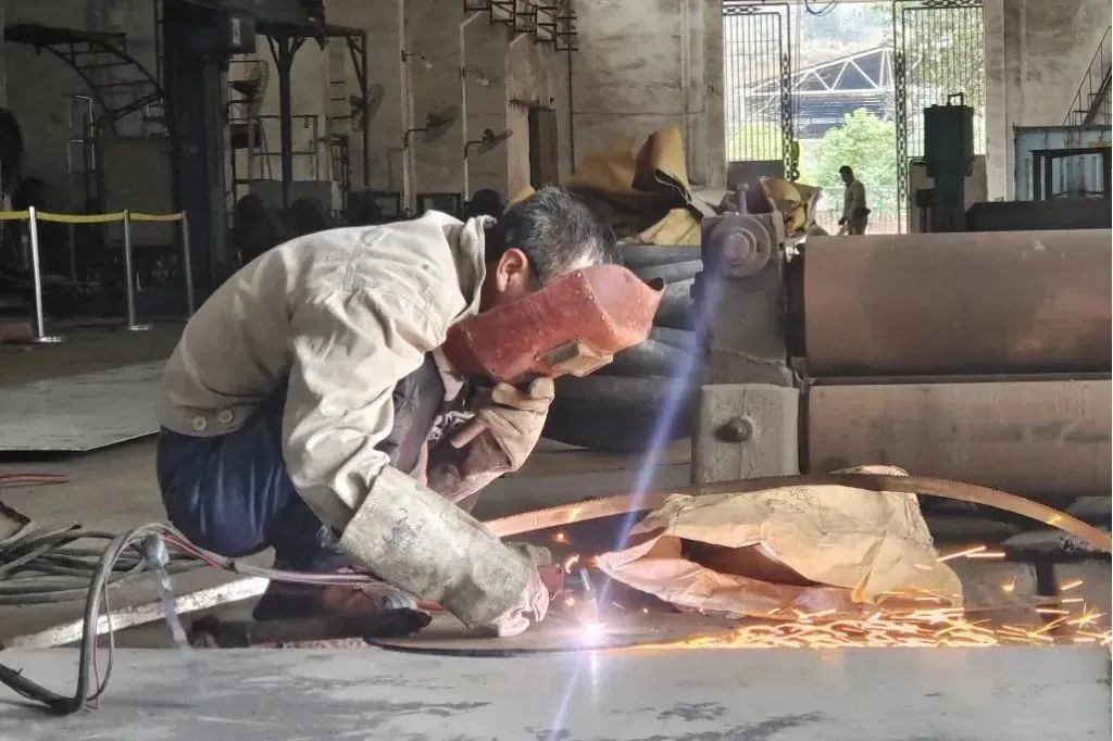 2月15日,机械厂铆焊车间内焊花闪烁,在各加工工位上,员工们有的在焊接、有的在切割、有的再打磨,现场呈现出一派热火朝天的劳动场景。