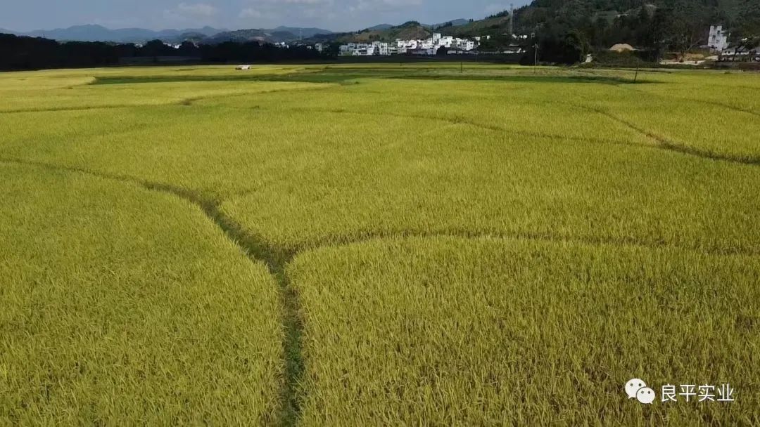 在这千亩富硒稻种植基地里,早稻富硒水稻稻穗压弯了稻秆,放眼望去一片金黄。