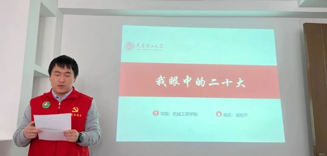 活动邀请大连理工大学机械工程学院戚佑平宣讲《我眼中的二十大》主题内容,声情并茂地讲述,时而发人深省,时而鼓舞人心,时而赢得阵阵掌声。以“小切口”解读“大问题”,以“小故事”阐释“大道理”,使党的二十大精神理论宣讲更加深入浅出,现场的党员干部认真聆听,深受启发,学习热情高涨。社区的老党员说道,“中国共产党是伟大、光荣、正确的党,我们现在的生活越来越好,离不开我们党正确的领导。党组织对我的关心、培养和教育,我永远不会忘怀。”“如果没有共产党的辛苦工作,就没有这个盛大的中国!感谢党给我们的幸福生活,向党旗敬礼!” 宣讲内涵丰富,一字一句震撼着党员干部的心灵,对深刻理解和准确把握党的二十大精神起到重要作用,引发强烈共鸣。努力做到学到底、悟到位,将党的二十大精神入脑入心,走深走实,融会贯通,对于启发思维、理清思路、鼓舞干劲起到推动作用。