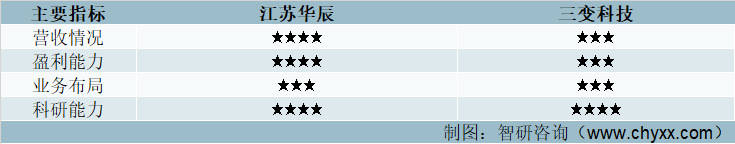 通过对比两家企业的主要指标,可以发现江苏华辰的营收情况和盈利能力强于三变科技,两者的业务布局能力和科研能力较为接近。两家企业作为我国变压器行业的重点企业均在近些年稳步发展,不断提升自身市场竞争力。
