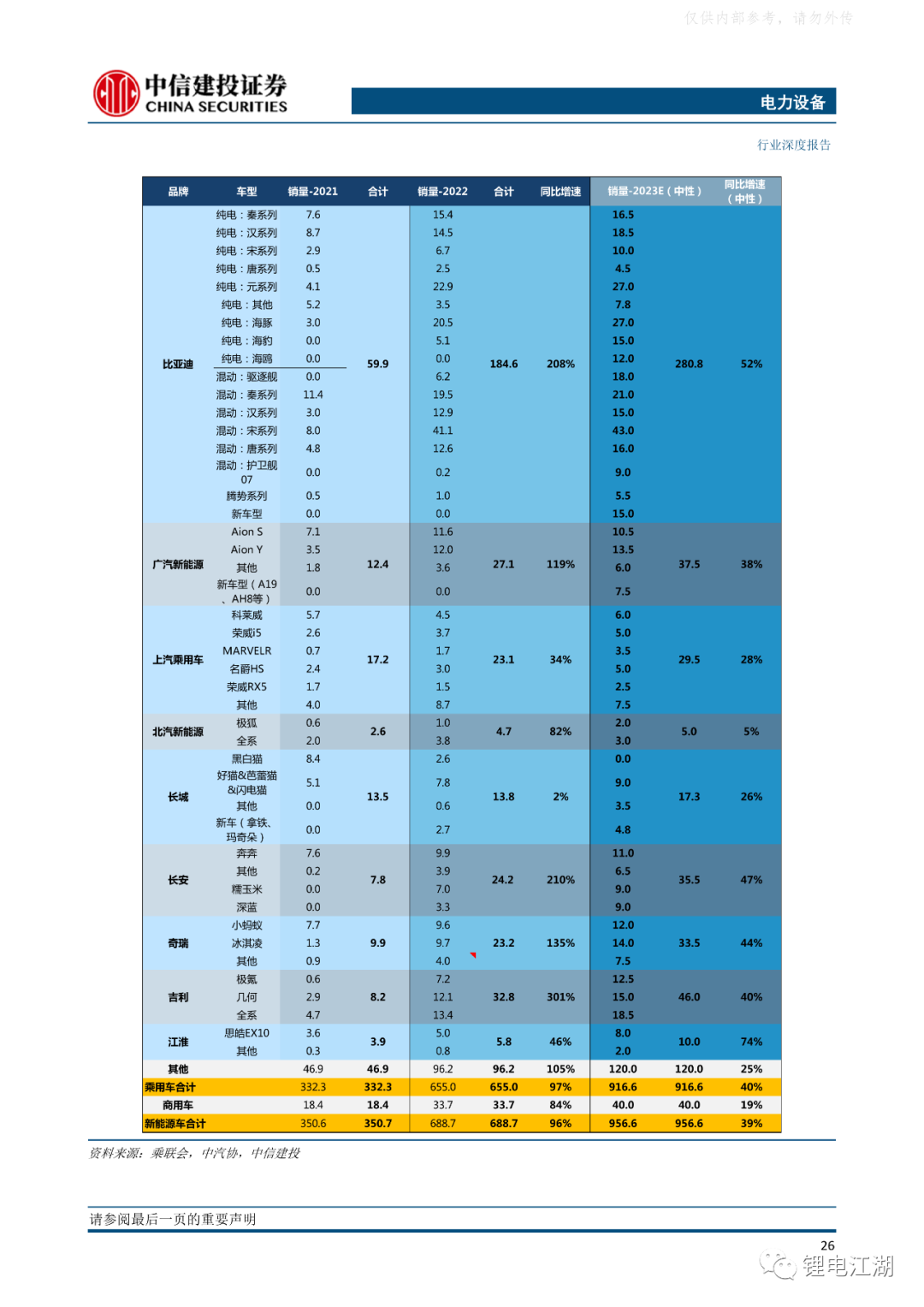 预计2023年中国电车销量957万辆(乘用车917万+商用车40万),同比+39%。其中Q1销量同比+30%达160万辆以上,是目前最大的预期差,销量驱动下将迎来估值和业绩预期的回归。