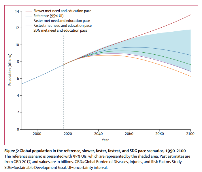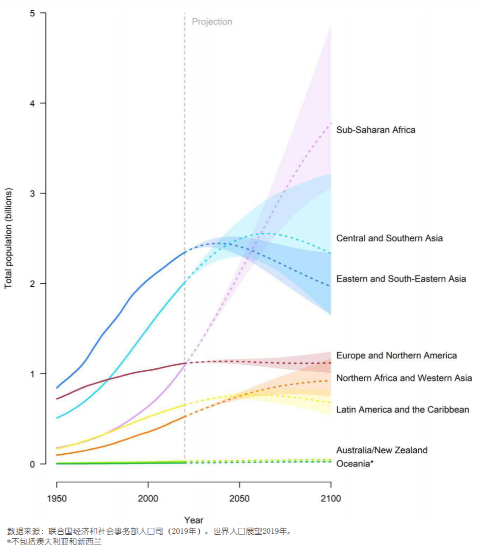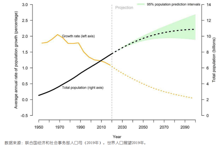 在华盛顿大学预测方案中,中国人口将于2024年达到顶峰(约14.3亿),随即进入人口负增长。