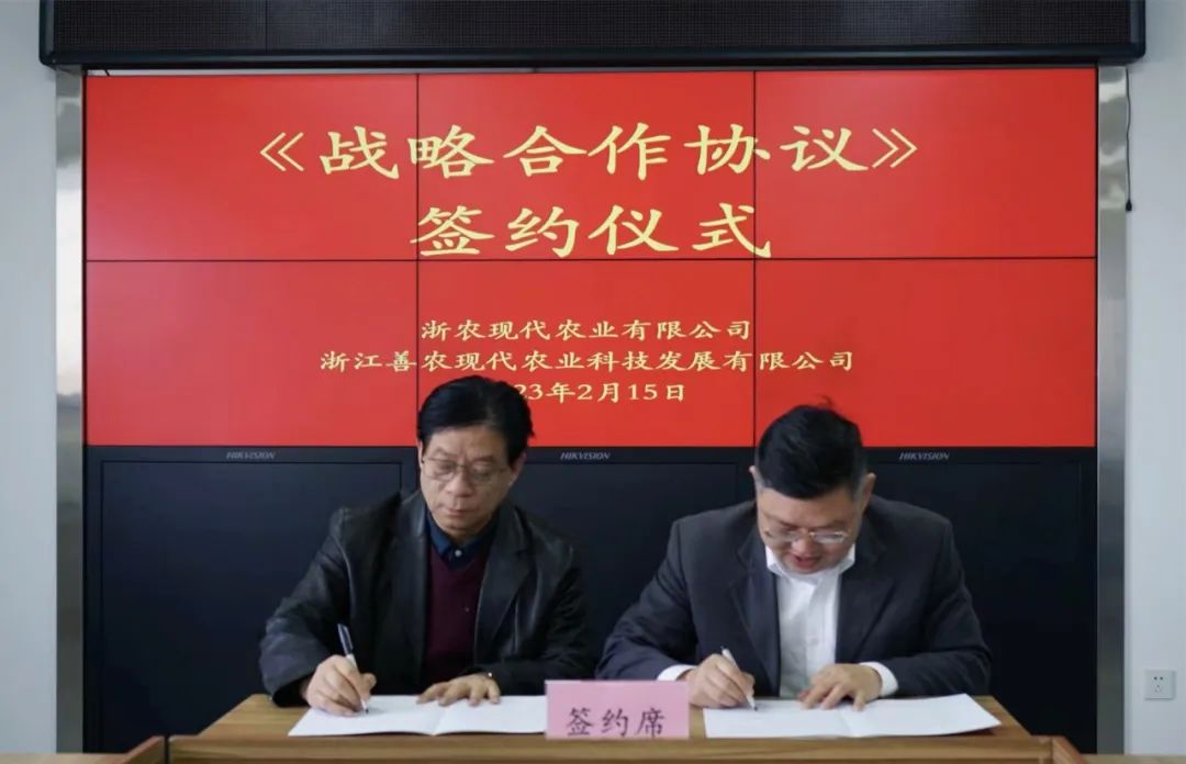 2月15日上午,浙江善农现代农业科技发展有限公司与浙农现代农业有限公司签署《战略合作协议》,建立战略合作伙伴关系,合作推进现代农业产业示范基地提升。