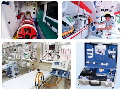 抢救车、吸引器、除颤仪、多功能监护仪、心电图机、简易呼吸器、气管插管或切开用物、呼吸机、胸外按压物品、洗胃机等。
