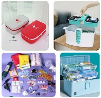 体温计、血压计、处理伤口或包扎的器具、消毒纱布、绷带、酒精棉片、家庭常用备药等。