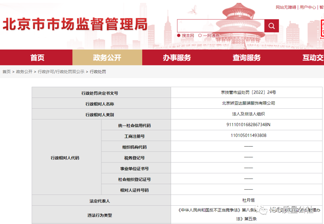 处罚决定书显示,北京娇亚达服装服饰有限公司存在非法买卖认证证书的行为。2021年6月21日,该公司向微信名为“刘朋(微信号“xingfuyuXXXX”)”者提供的户名“上海华佑企业管理认证咨询有限公司”的账户付款9000元,以期办理“职业健康安全管理体系认证证书、环境管理体系认证证书、质量管理体系认证证书”。仅过一天,对方通过微信反馈证书已办好。一周后,北京娇亚达服装服饰有限公司收到“刘朋”邮寄的证书,发证单位均为中元兴国际认证(中国)有限公司,但从始至终中元兴国际认证(中国)有限公司未进行现场检查等认证活动。另查,2021年8月5日,国家认证认可监管委发布《认监委关于4家机构非法从事认证活动的公告》(2021年第13号)称:经查证,UKAS赛宝体系认证(中国)有限公司、艾瑟标准管理体系认证有限公司、中元兴国际认证(中国)有限公司、长江国际标准检测认证中心等4家机构违反《中华人民共和国认证认可条例》规定,在未经认监委批准的情况下,擅自非法开展认证活动,并向部分企业颁发认证证书。上述4家机构颁发的认证证书无效。
