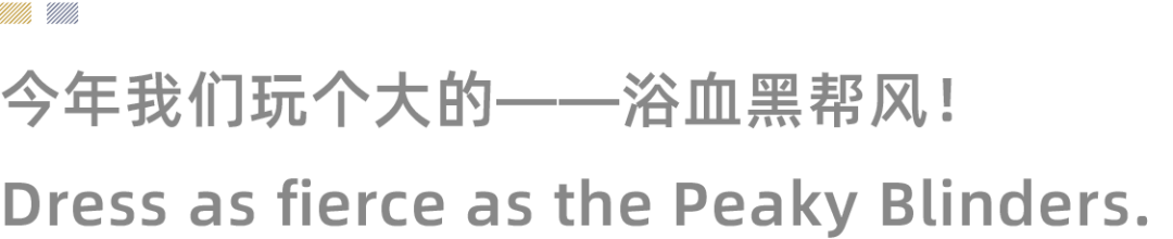 If you look back to early last century, anywhere in the world, it was the industrial age, when the power of hard labor was necessary to survive and life definitely wasn’t about the finer things for most. In the last few years our industry has had to endure through shut downs, lockdowns and illness. We have been simply doing enough to keep our industry ticking until things might turn around. So as we celebrate together this turn towards the better, let’s take a step back to the earlier times when classic cocktails were being created, when gentlemen gangsters roamed the streets, and life was less complicated. 所以,让我们从Tommy Shelby和他的剃刀党身上寻找穿搭灵感。范儿十足的定制三件套西服、报童帽和黑皮靴。夺人眼球的亮片、珍珠和钻石。还是没头绪?那就来看看我们收集的一些示范吧: