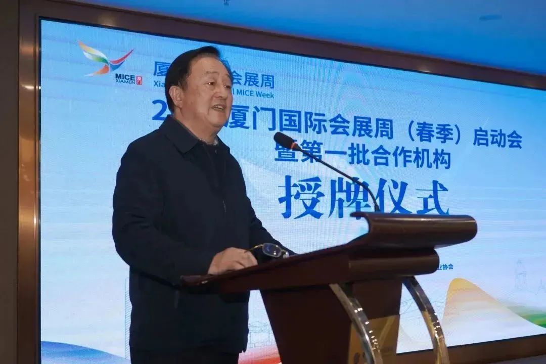 ▲厦门市会议展览促进中心主任李流泉为企业授牌