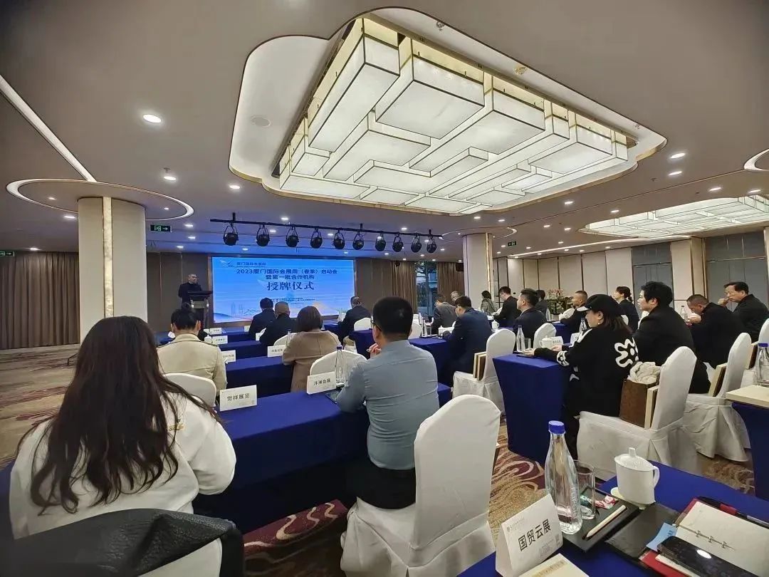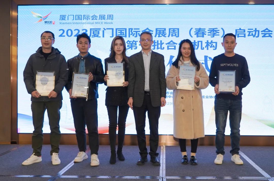 会上,举行了厦门国际会展周合作机构授牌仪式,陈颢颖、郑智与厦门市会议展览促进中心主任李流泉、厦门市商务局会展处处长孔祥强等领导为第一批厦门国际会展周合作机构授牌。