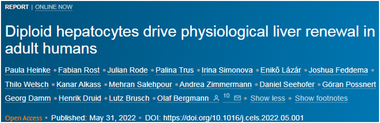 Paula Heinke et al. Diploid hepatocytes drive physiological liver renewal in adult humans. Cell Systems, 2022, doi:10.1016/j.cels.2022.05.001.