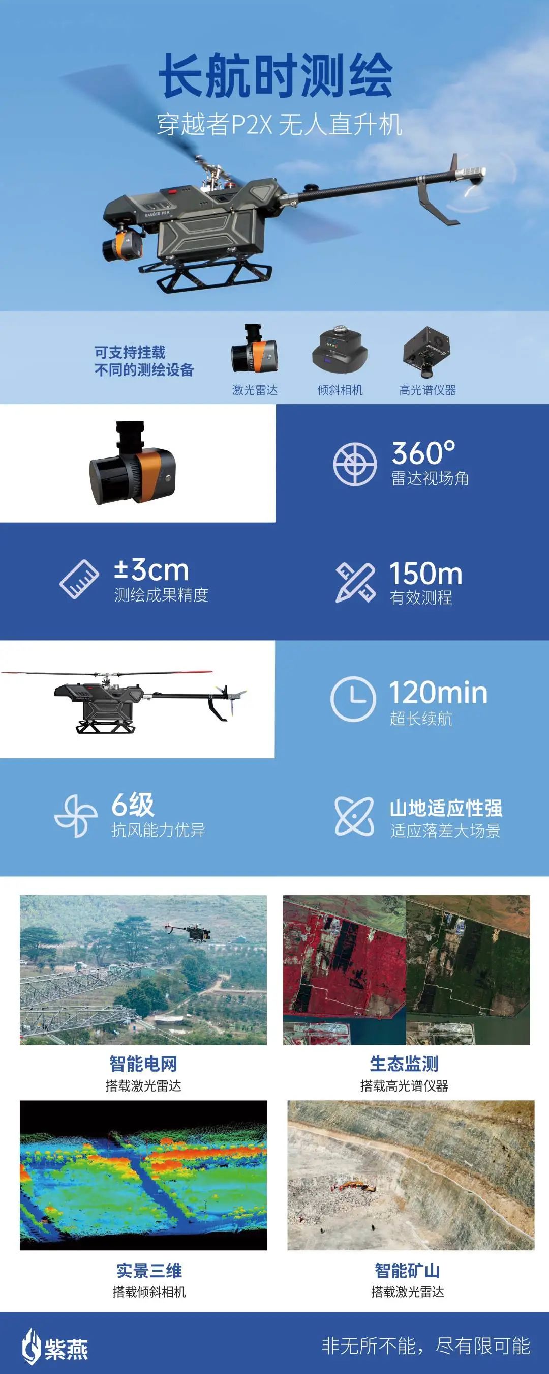 测陆海天地之广袤,绘山林川泽之锦绣。测绘,支撑治国理政,赋能各行各业,服务千家万户,在推动高质量发展中具有基础性、先行性的重要地位和作用。紫燕用创新的技术和可靠的产品积极响应新时代测绘地理信息工作定位:“两支撑、一提升”,支撑经济社会发展,支撑自然资源管理,不断提升测绘地理信息工作的能力和水平。