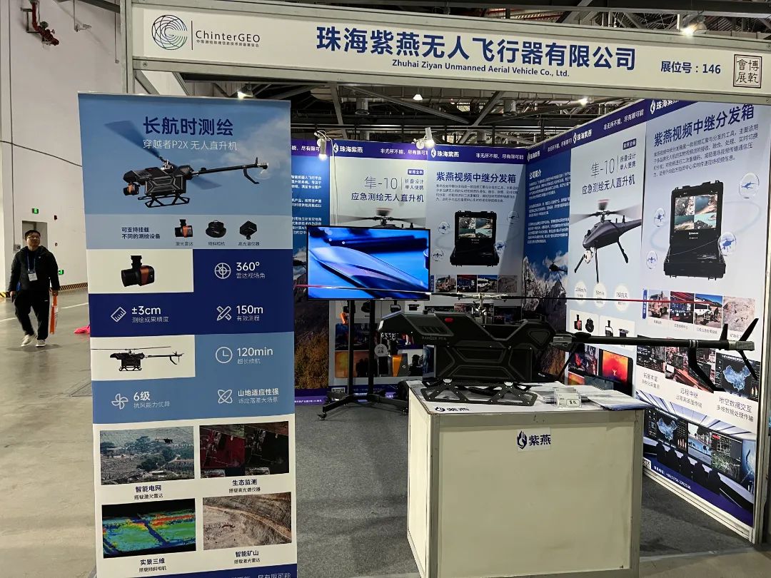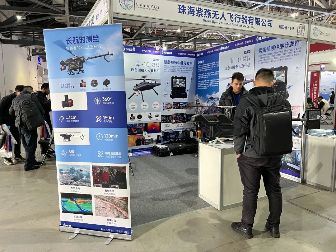 展会期间,紫燕首次展示穿越者P2X无人直升机以及长航时测绘行业解决方案,获得众多行业客户观众驻足展位参观交流。