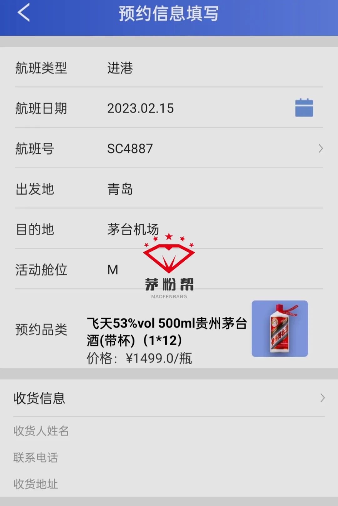 购买山航实际承运的青岛=遵义(茅台)、南宁=遵义(茅台)往返程航班M舱机票并乘机的旅客,可预约购买飞天53%vol 500ml贵州飞天茅台酒(带杯)。