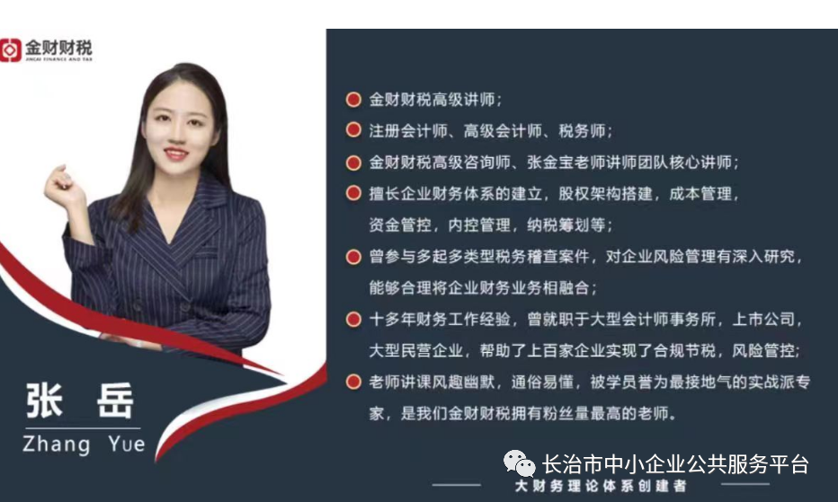 主 讲:从事中小企业财税工作的专家讲师金财财税注册会计师张岳。