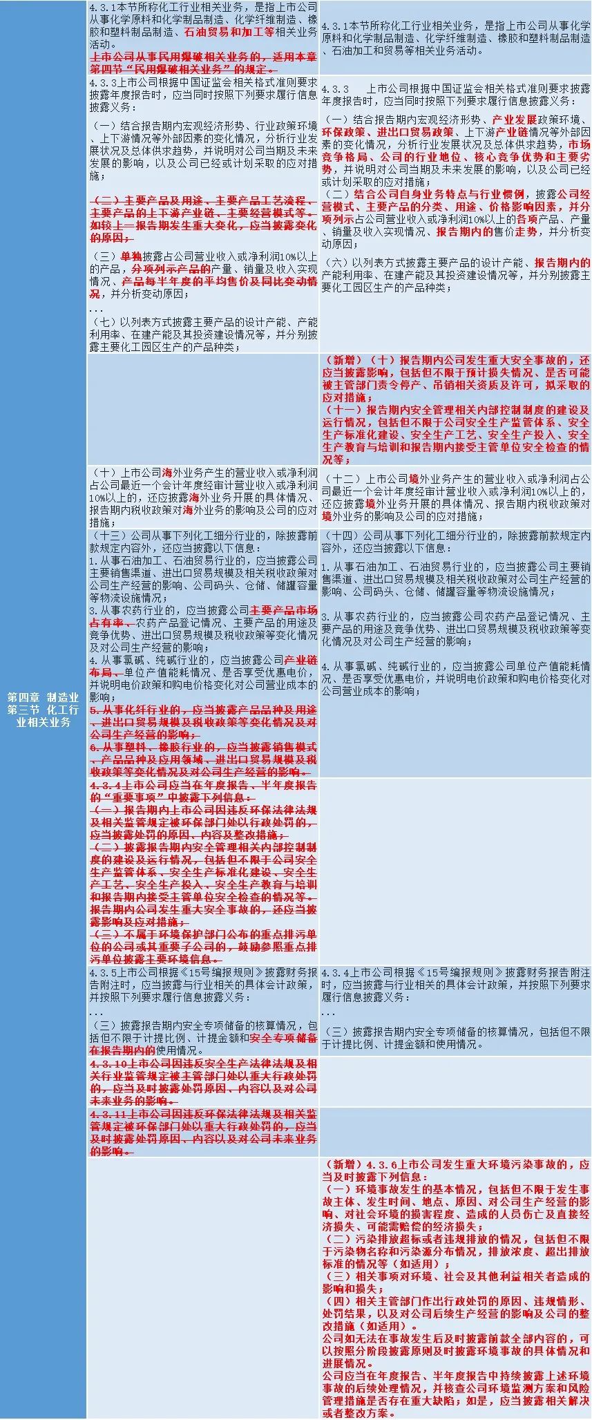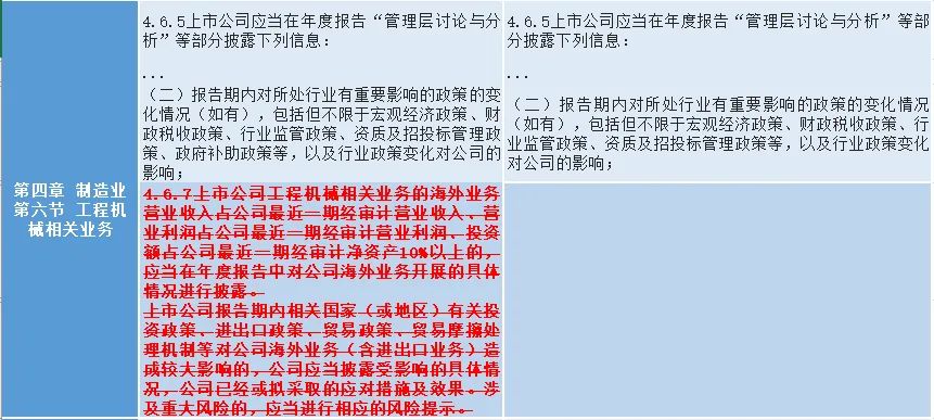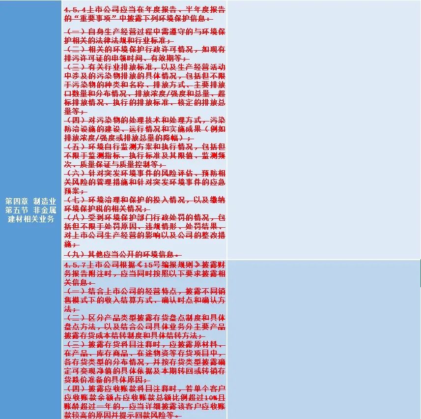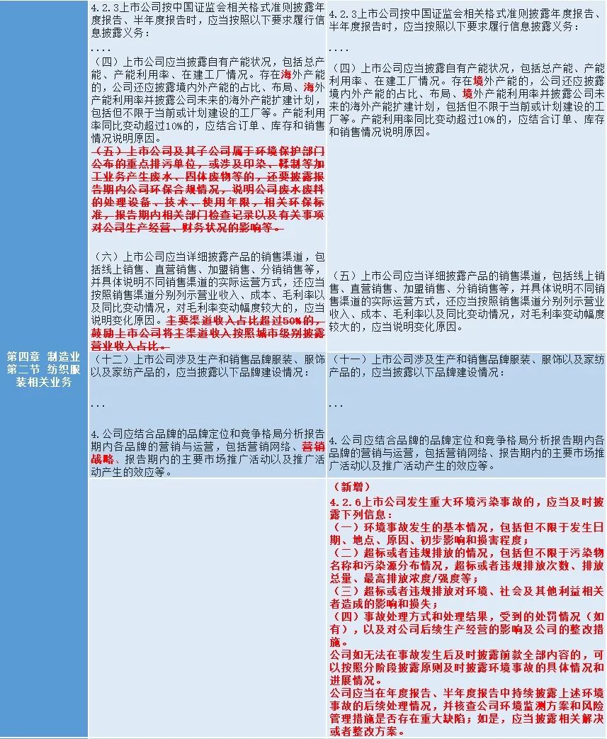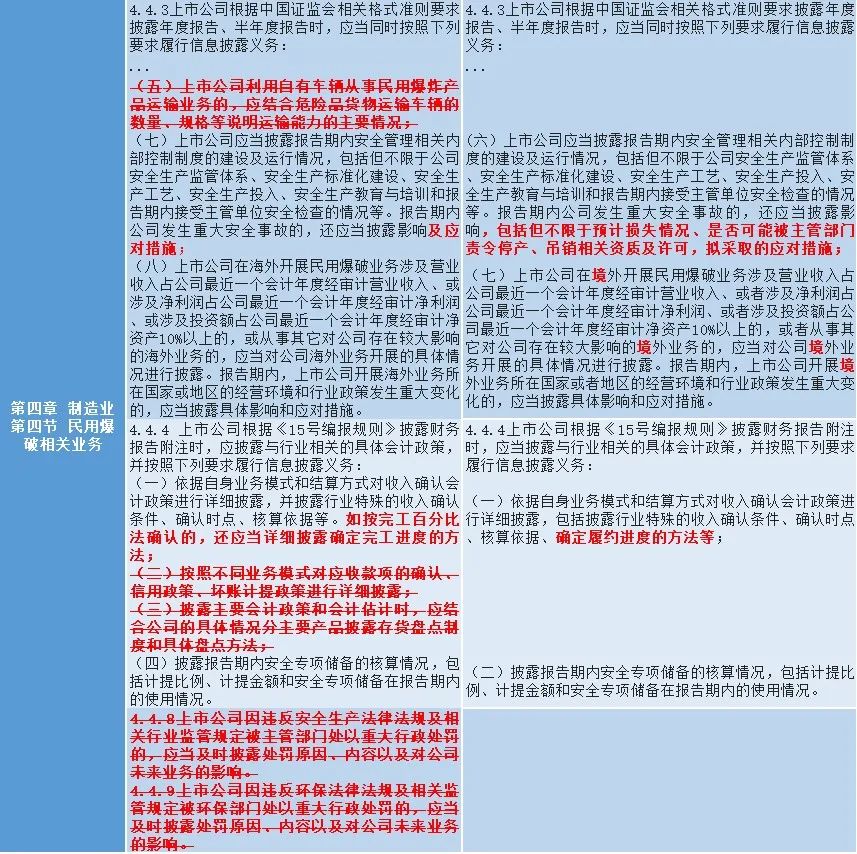 二是强化ESG信息披露要求,结合行业特点,细化重污染行业的重大环境污染事故信息披露要求,涉及固体矿产资源相关业务、食品及酒制造相关业务、纺织服装相关业务、化工行业相关业务、电力供应业务;细化发生安全事故可能性较高、事故影响程度较大行业的重大安全事故披露要求,涉及固体矿产资源相关业务、化工行业相关业务、民用爆破相关业务,进一步推动上市公司承担社会责任。