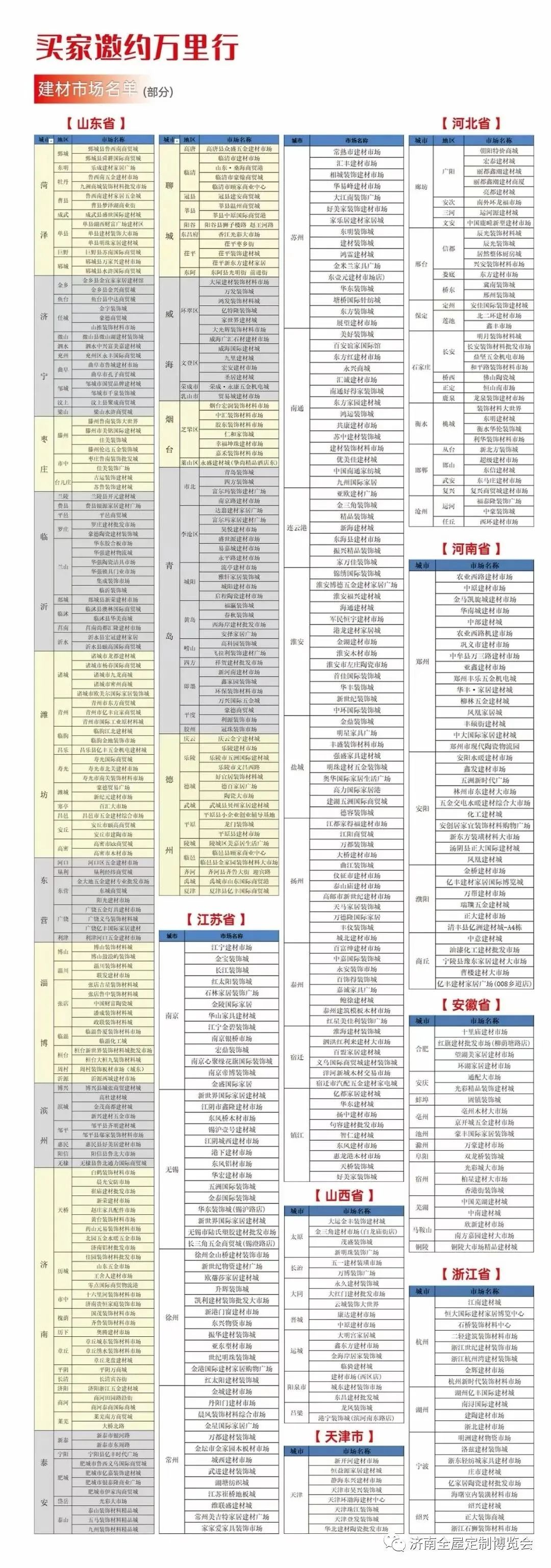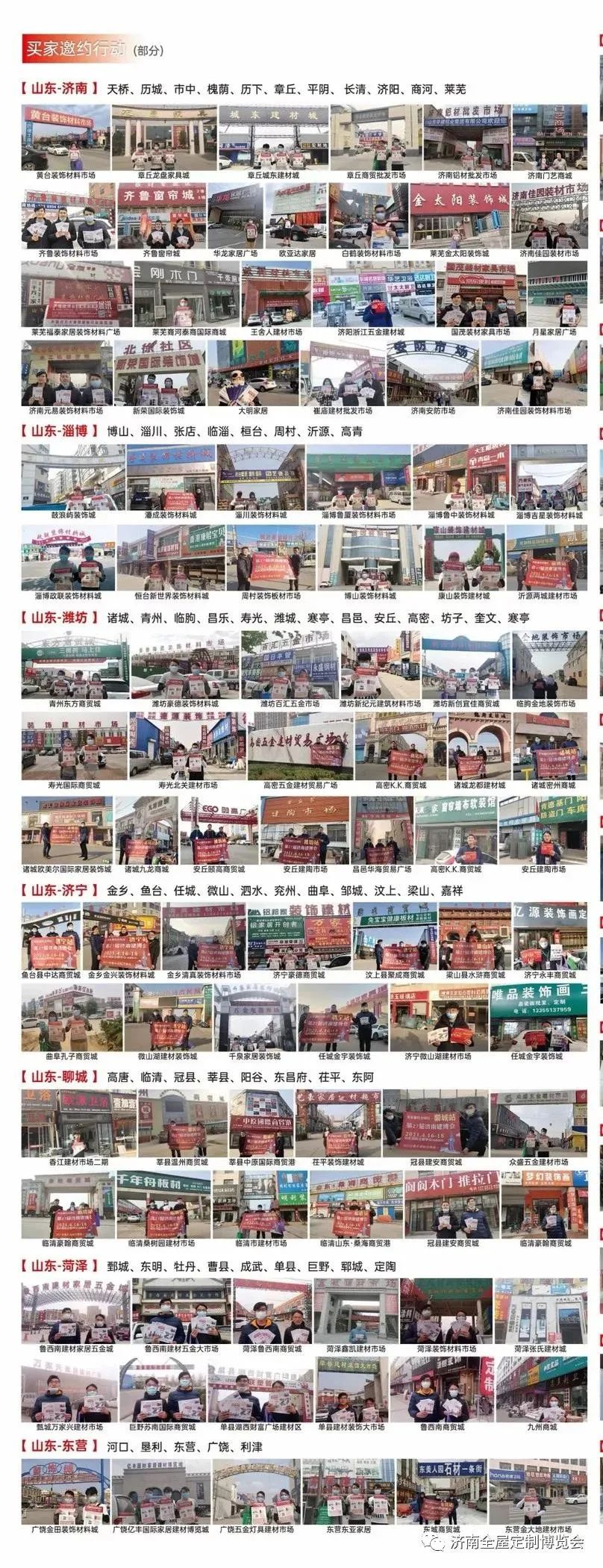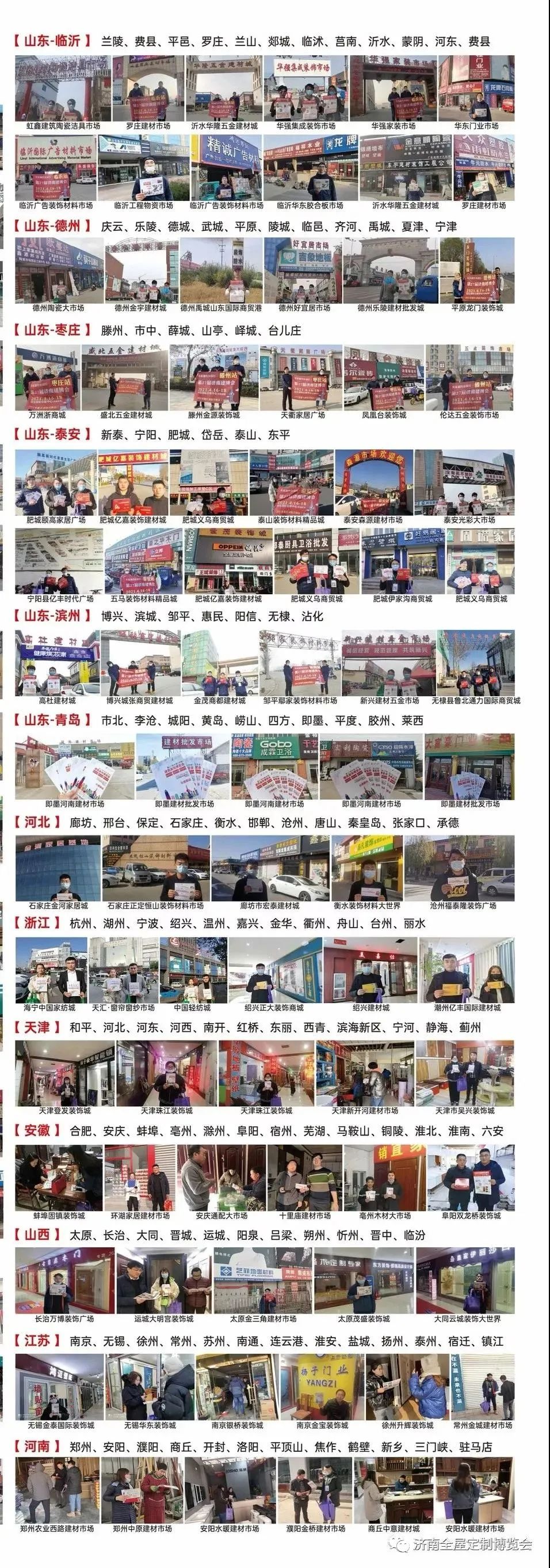 近日,济南建博会买家邀约部全面开启省外观众买家邀约工作,奔赴天津、河北、河南、安徽、江苏五省各地市一线建材市场进行专项邀约,提前对展会信息进行炒作,确保行业内对济南建博会始终保持关心关注。