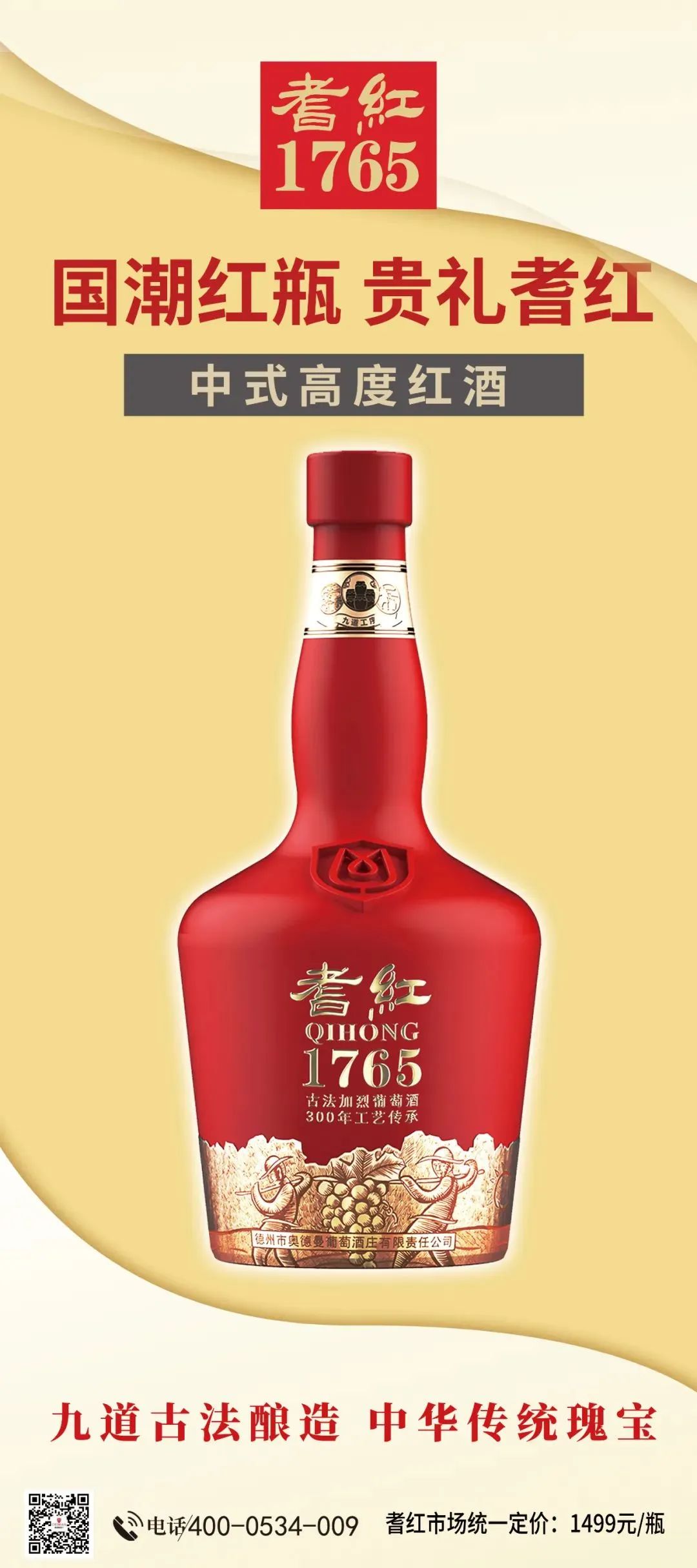 耆红一改过去西式葡萄酒单调的瓶型包装样式,采用了中国国潮风格的酒瓶,大红大金高贵典雅,国风浓郁,凸显其不凡身份。耆红古法加烈葡萄酒因原料要求高,酿造工艺复杂,品质独特高雅,产量有限,而且又能长期存放,因此该酒极具收藏价值,成为不可多得的贵重礼品之酒。