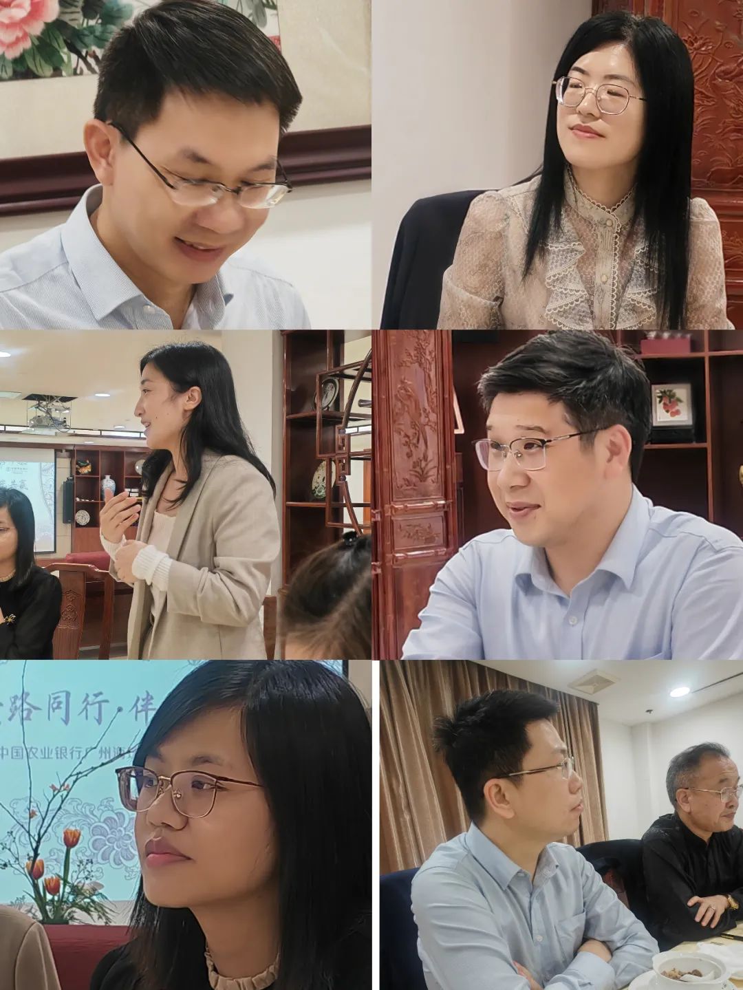 执行会长丁金水简单介绍了商会的发展情况并表达了此行目的;轮值会长徐斌表示商会平台是一个实现资源共享,学习交流借鉴的平台,银行与企业在金融领域是相辅相成的,企业离不开银行这块“活水”,商会讲究合作共赢,跟银行合作也是如此,更要以创新发展,成为商会合作新点范。大家积极发言,收获良多。活动人员名单:执行会长、国领天酒业集团有限公司董事长丁金水,常务副会长、广东东篱环境股份有限公司董事长徐斌 ,常务副会长、广东雅建建设科技股份有限公司董事长陈仁忠,专职执行副会长兼秘书长邓庆胜 , 理事、广州礼友礼品有限公司总经理巫生锦,商会常务副秘书长龚志军,广东雅建建设科技股份有限公司副总王艳,商会综合部长赖文栋。农行海珠支行参加人员有:海珠支行行长周继兴,海珠支行副行长何其锋,海珠支行副行长马静欣,海珠石溪支行行长刘晗明,海珠国金中心行长石玉川,海珠个金部经理周玮,海珠私行团队负责人李筱娴。