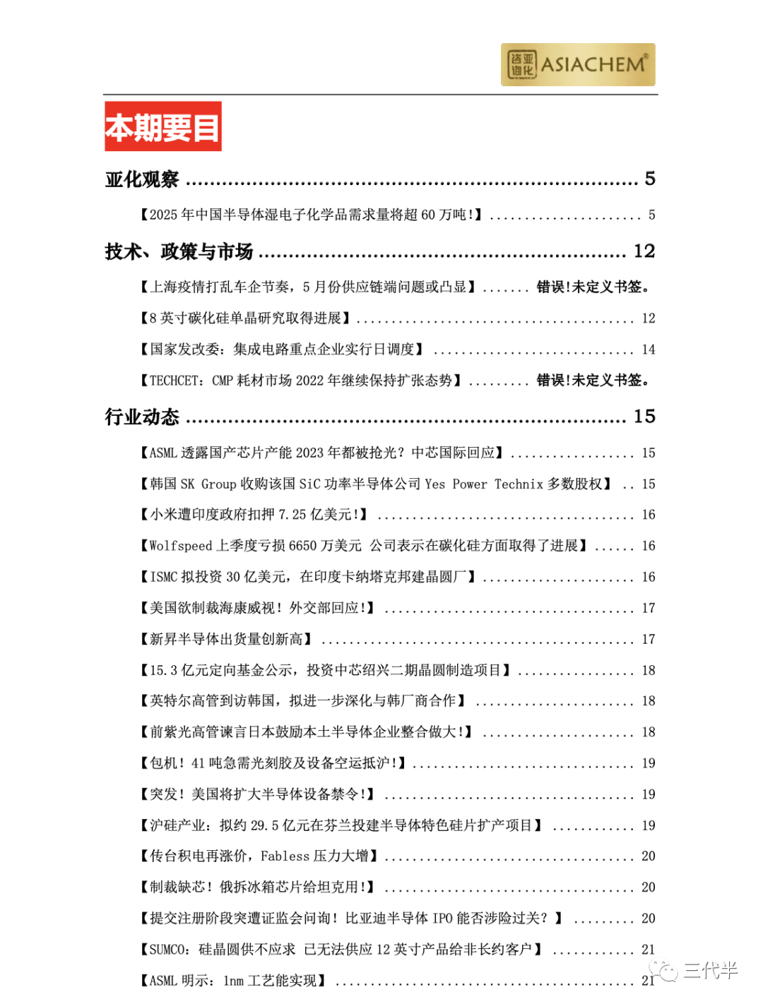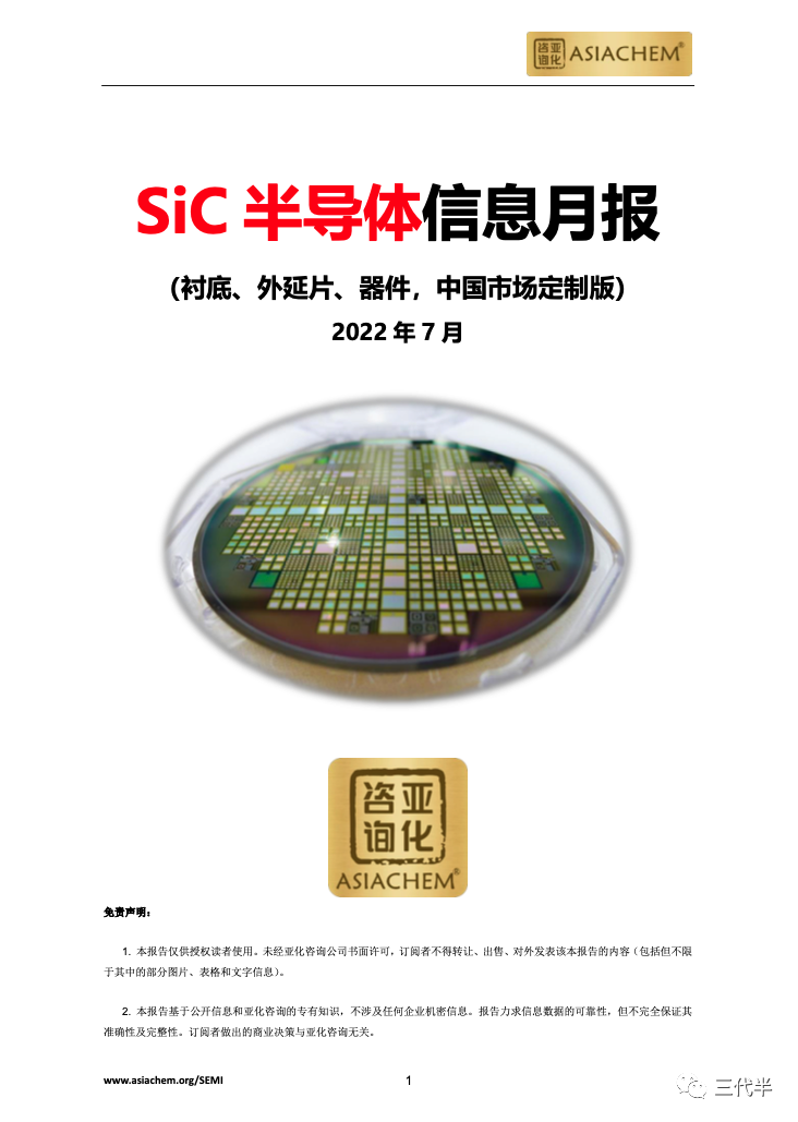 新能源市场巨大需求驱动着第三代半导体以SiC、GaN为代表的功率器件在激光通信、快充、续航等领域的大规模市场应用。亚化咨询推出《中国第三代半导体SiC月报2022》,每月以PDF文档形式重点关注三代半导体行业动态、前沿技术、项目进度等,为各位行业同仁实时抓住行业热点,把我行业脉搏提供清晰可靠的前沿消息。