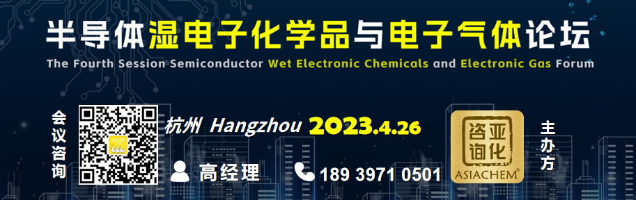 第四届半导体湿电子化学品与电子气体论坛2023将于4月26日在杭州召开。会议由亚化咨询主办,多家国内外龙头企业重点参与。