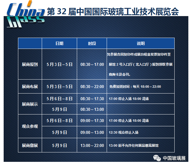 中国国际玻璃工业技术展览会(简称:中国玻璃展)由中国硅酸盐学会创办于1986年,每年轮流在北京、上海举办,是亚太地区玻璃行业规模最大的专业展会。经过35年的培育和发展,中国玻璃展已成为具有完全自主知识产权的国际知名专业展会,是中国玻璃行业最具商业价值的展览展示、技术交流和商贸洽谈平台,为国际咨询机构评估玻璃行业发展提供了重要依据。中国玻璃展已成为全球玻璃行业的“晴雨表”和“风向标”。