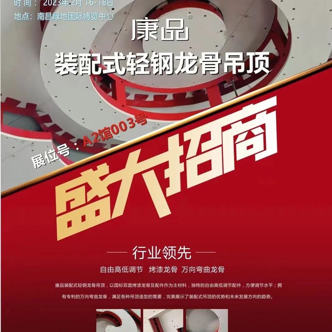 2023年2月16日,康品装配式轻钢龙骨惊艳亮相2023中国建博会(江西),迎来无数关注的目光!