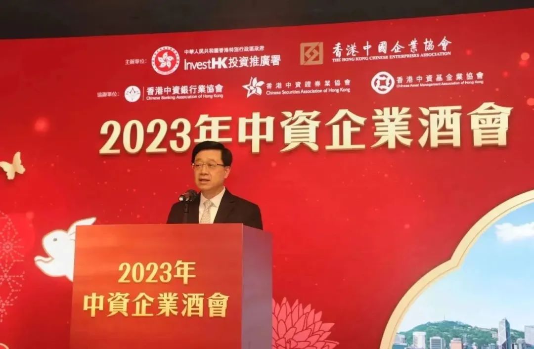 酒會席間,香港特區行政長官李家超表示,內地與香港的經濟發展密不可分,香港已是外資進入內地市場以及內地企業投資世界各地的重要雙向平臺,更是全球第三大外來直接投資流入的經濟體。香港正全力對接國家「十四五」規劃、粵港澳大灣區建設和「一帶一路」倡議等,為經濟發展註入源源不絕的動能,歡迎更多中資企業繼續善用香港的優勢,到香港開業和拓展業務,特區政府將繼續鞏固和提升有利的營商環境,協助中資企業在香港和世界各地發展。