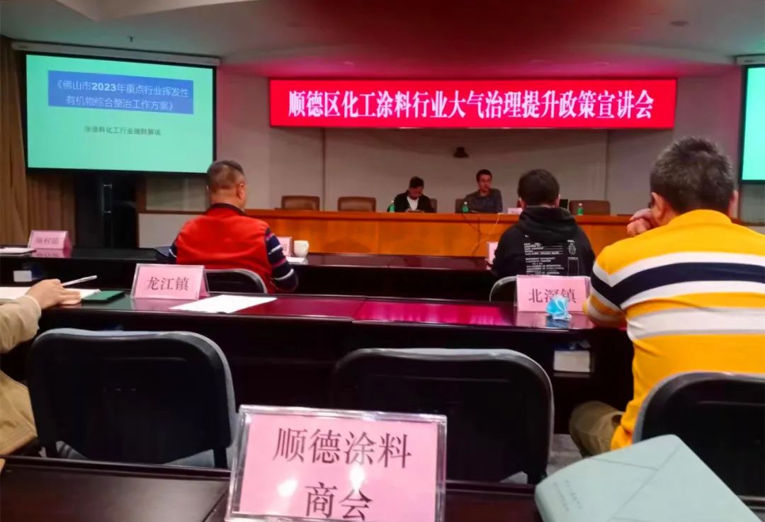 本次宣讲会参加人员有佛山市生态环境局顺德分局大气科负责人、各镇(街道)生态环境监督所分管大气的所领导、涂料化工(全水性漆生产企业除外)制造企业负责人及我商会饶海东先生代表参会。