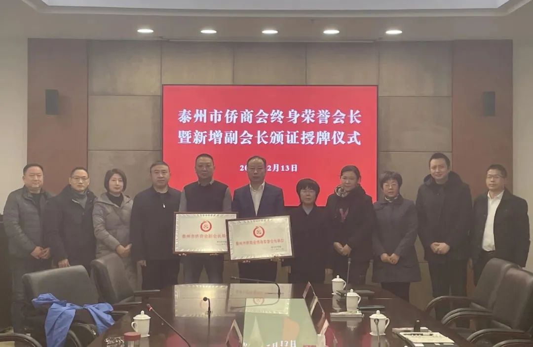为进一步增强泰州市侨商会活力,聚焦“致力民生,聚力转型”,服务全市经济社会高质量发展,经前期调研考察和综合考量,泰州市侨商会在市侨联建议下,经广泛充分磋商,授予澳大利亚国泰投资集团有限公司董事长、澳联健康科技(江苏)有限公司董事长陈俊先生为泰州市侨商会终身荣誉会长,同时增补德铝国际香港有限公司董事长章贵祥先生为市侨商会副会长。