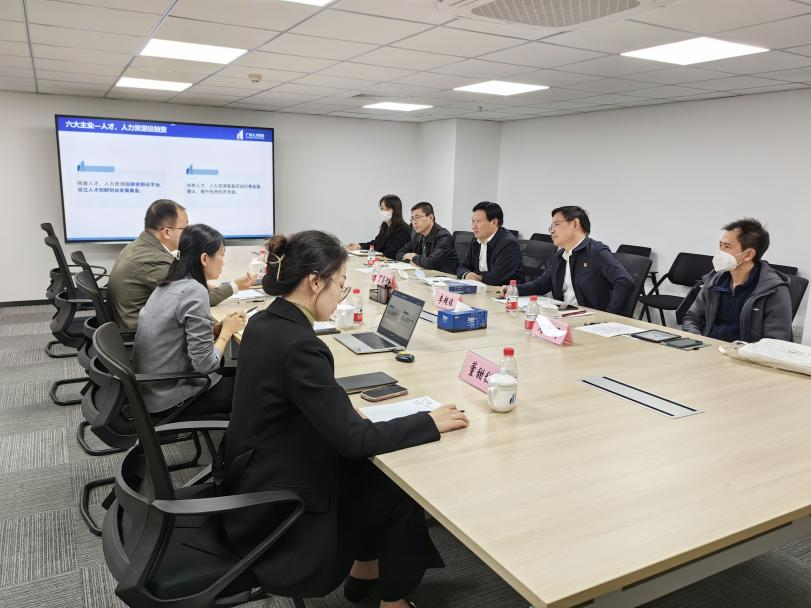 来宾参观人才集团现代化展厅后,由汤恩董事长对人才集团基本情况、战略布局及优势业务做了全面介绍。座谈会上,珠实集团丁昌银副书记对人才集团在人才、人力资源服务方面的专业化水平表示赞赏,与会双方围绕珠实集团海外引才工作进展、高层次人才招聘、人才评价、薪酬体系优化等需求进行充分沟通交流,深入探讨挖掘双方在人才、人力资源服务方面全产业链条合作,以及珠实集团在建设、健康等专业领域的合作。