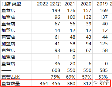2、这几年歌力思一直在做加盟门店的清理工作(门店经营不合规因素),因此歌力思直营门店大幅增长,2022年比2019年增长153家,增加49%。