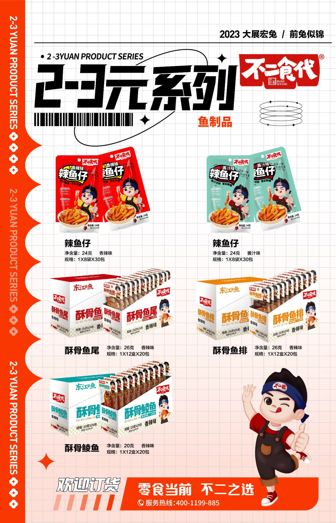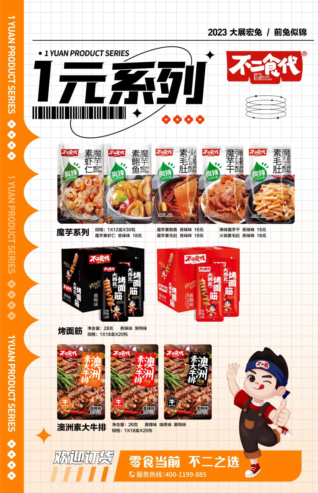 公司简介:湖南九馋食品贸易有限公司创立于2013年,位于湖南长沙。研发生产、OEM酱卤肉制品、豆制品、大豆蛋白制品、魔芋制品等休闲食品。旗下“不二食代”品牌,包装独特吸引,产品畅销。