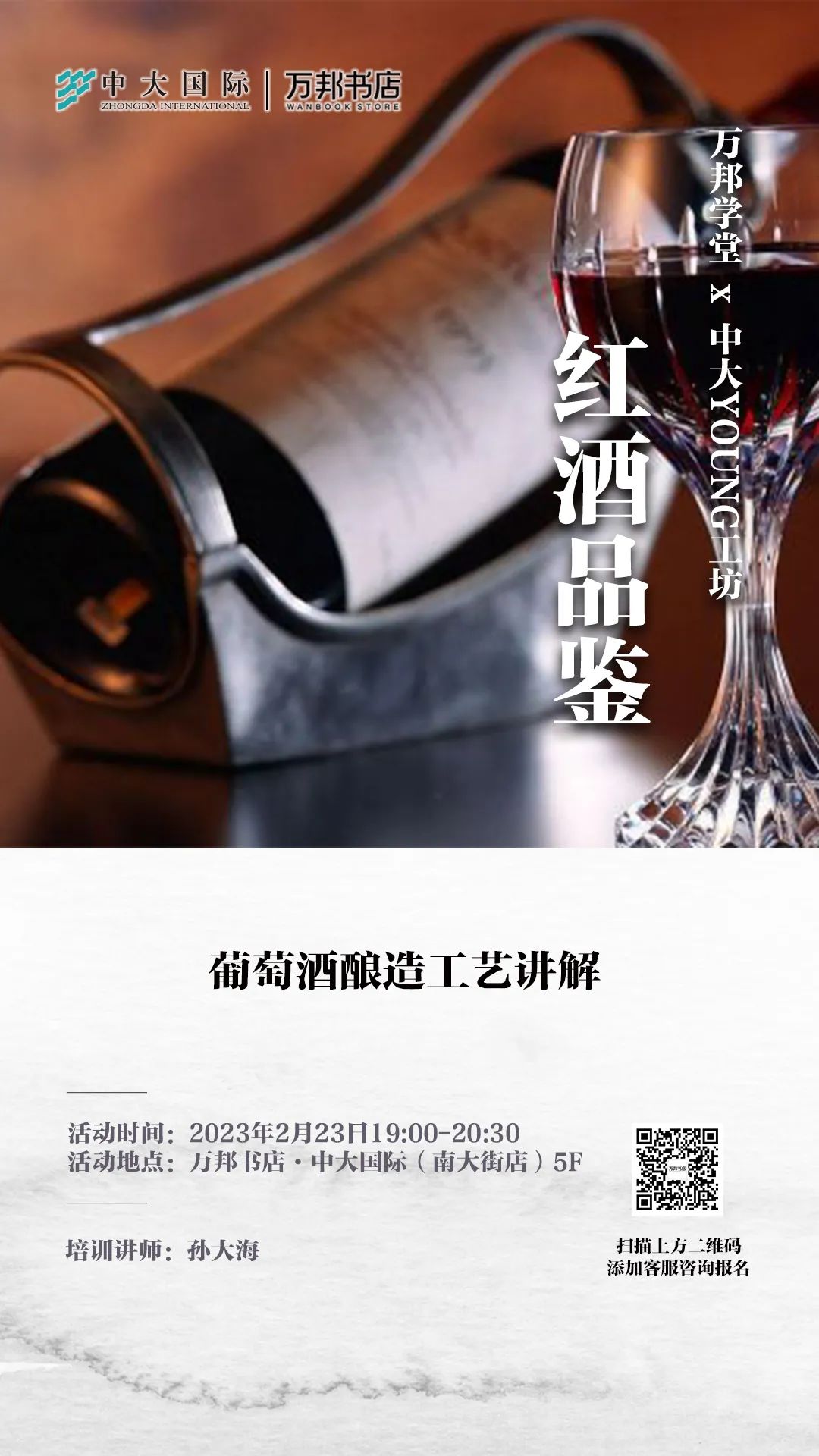 本次活动将主要讲述干红葡萄酒与干白葡萄酒的酿造过程。另外,我们也将在现场进行红酒品鉴。