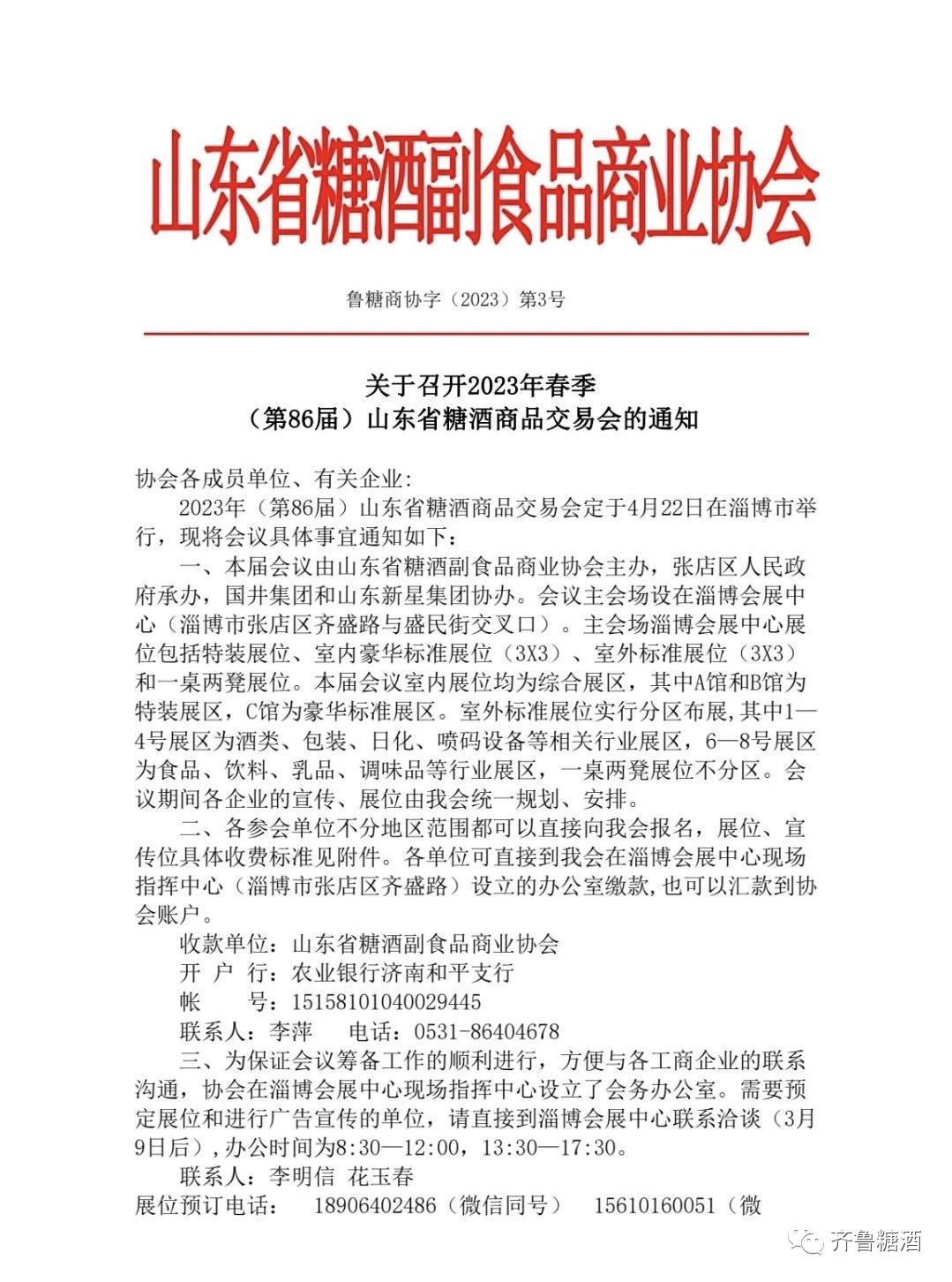 2023年春季(第86届)山东省糖酒商品交易会4月22日在淄博举办
