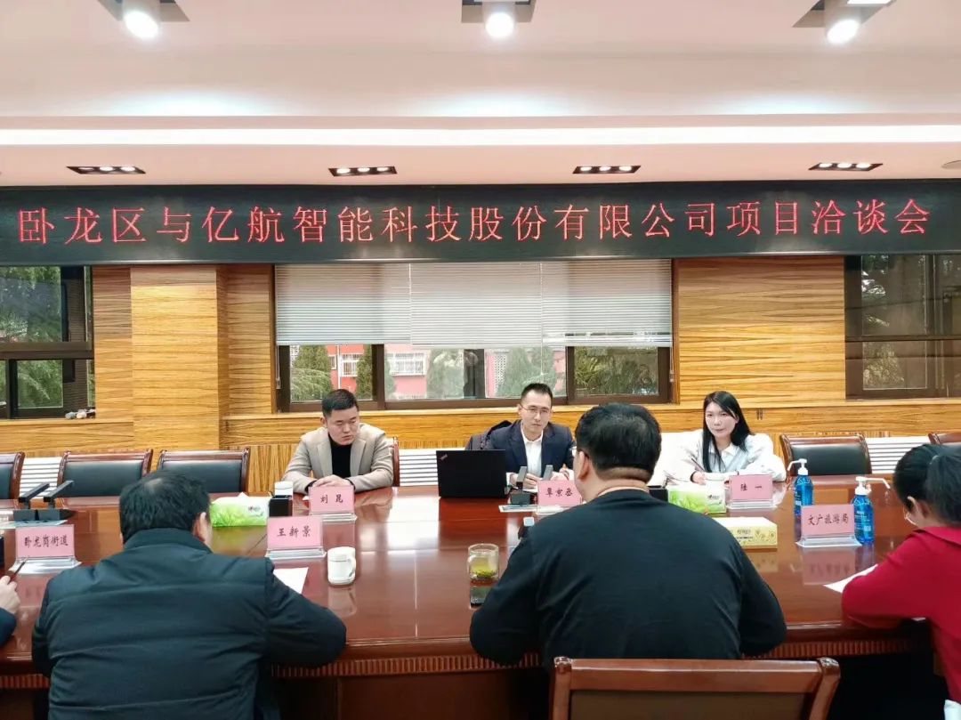 2月16日下午,卧龙区与亿航智能科技股份有限公司项目洽谈会召开。亿航智能科技股份有限公司大中华区投资副总覃京丞、卧龙区政府副区长贺小森出席洽谈会。