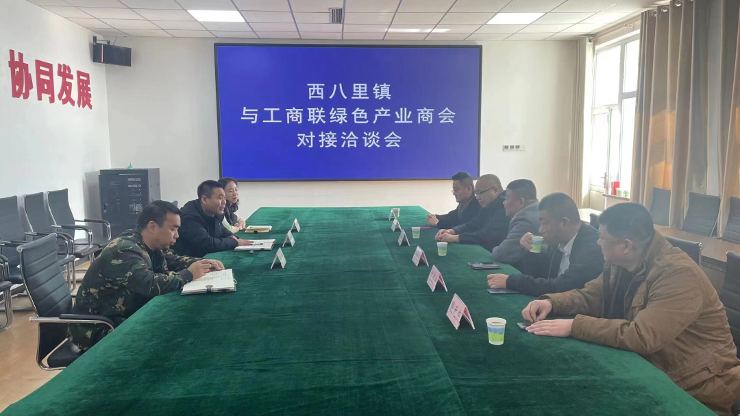 在会长谈静云的带领下,绿色产业商会副会长汤漫洪、艾国平,理事王鹏,会员任桂兵一行5人于2月13日上午10时,参加了西八里镇与绿色产业商会对接洽谈会。