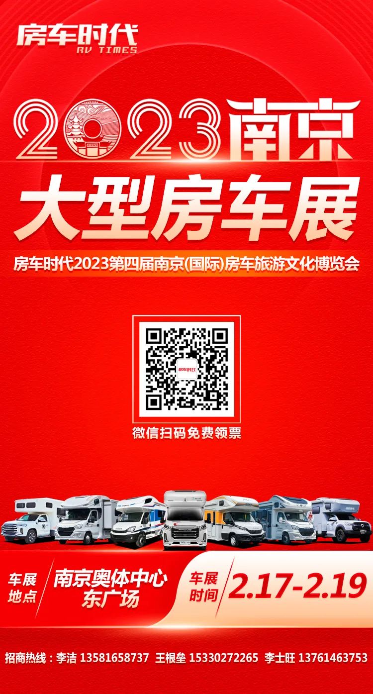 了解更多房车资讯及最强优惠,欢迎关注房车时代2023第四届南京(国际)房车旅游文化博览会,2月17-19日,我们在南京奥体中心东广场与您相约,报名已经开始,千万不要错过~快来扫码领取免费门票!