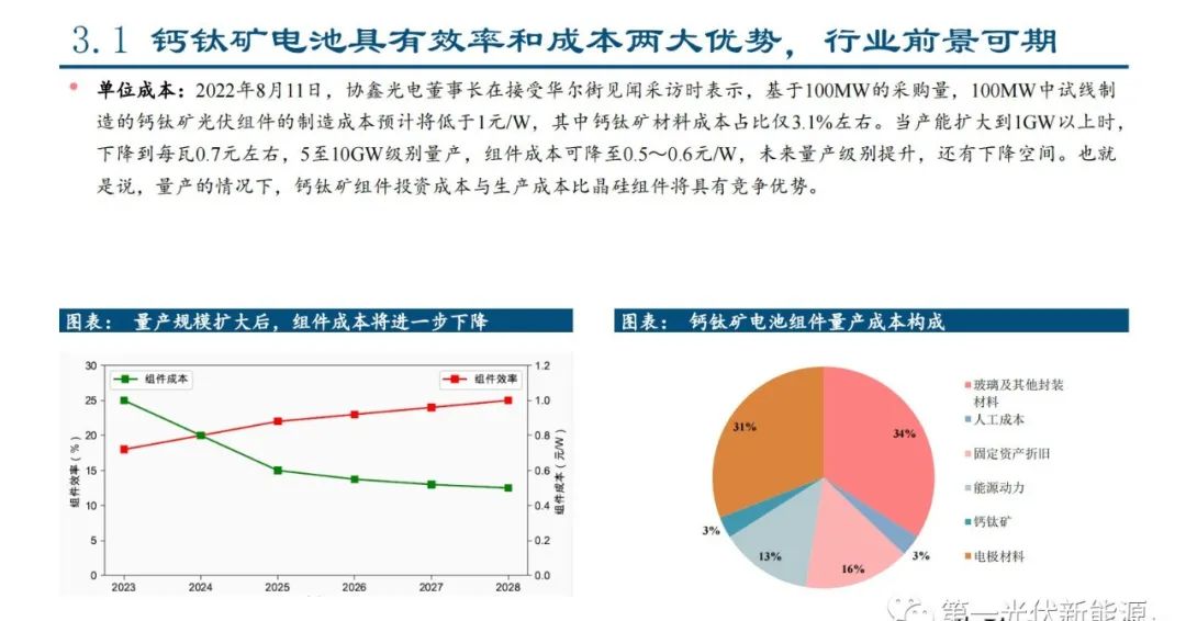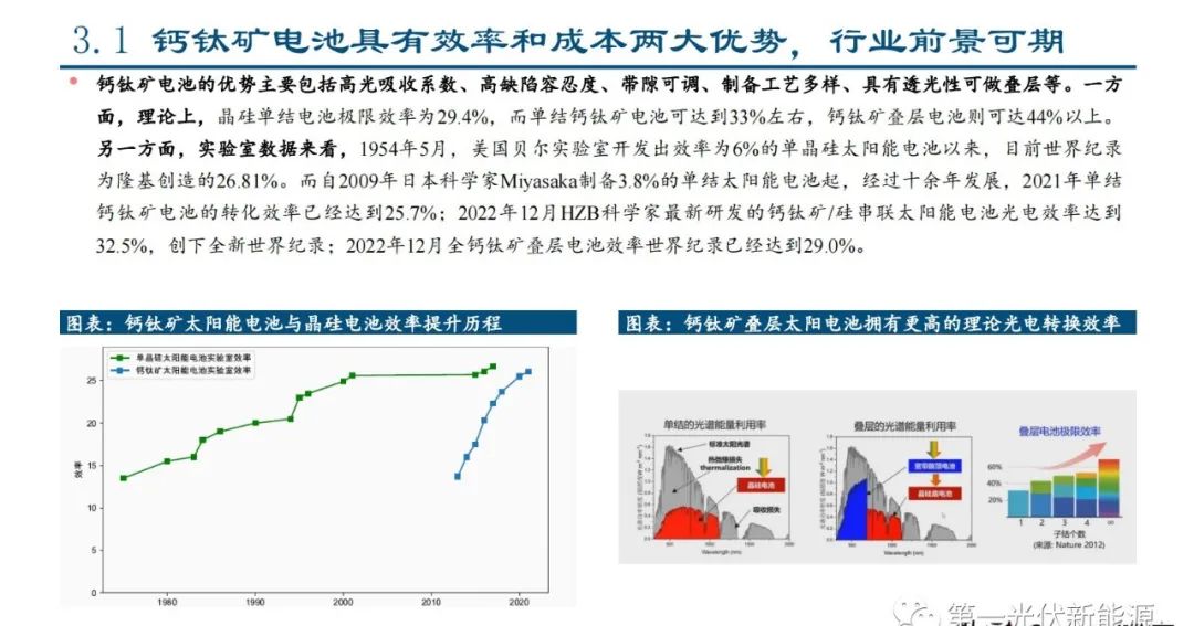 3.1、钙钛矿电池具有效率和成本两大优势,行业前景可期