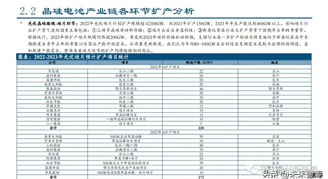 2.2、晶硅电池产业链各环节扩产分析