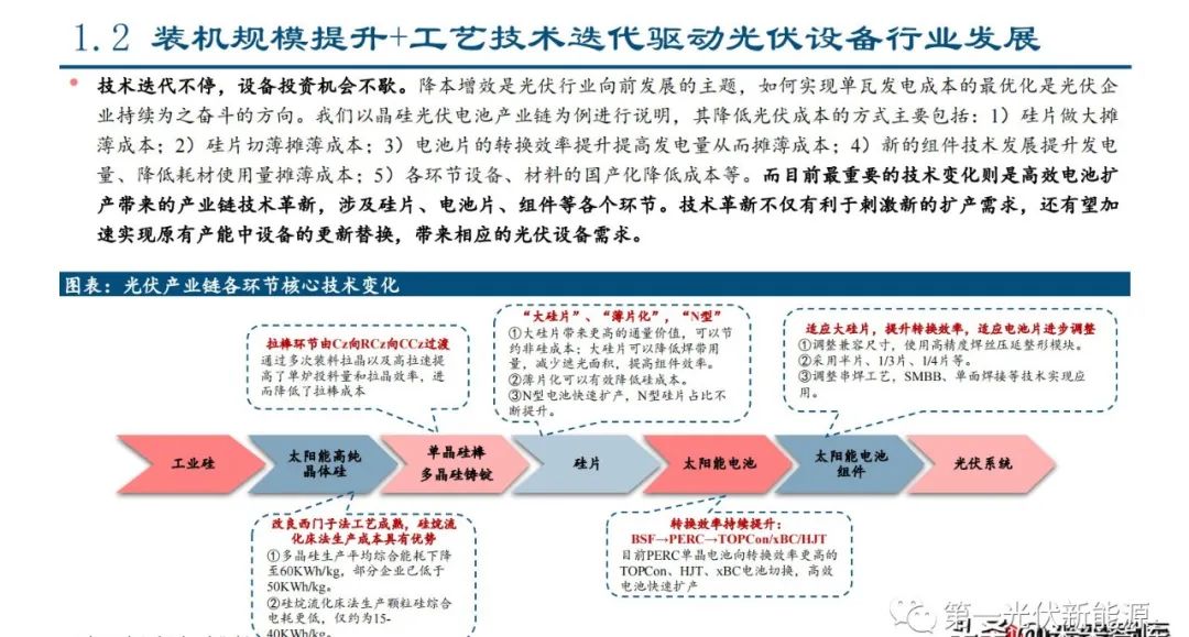 1.2、装机规模提升+工艺技术迭代驱动光伏设备行业发展