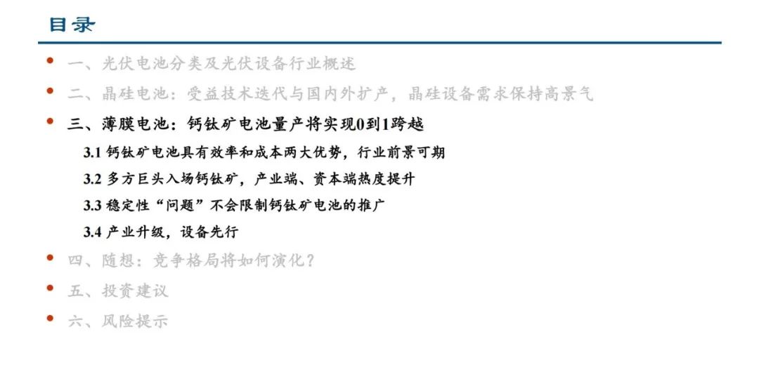 三、薄膜电池:钙钛矿电池量产将实现0到1跨越
