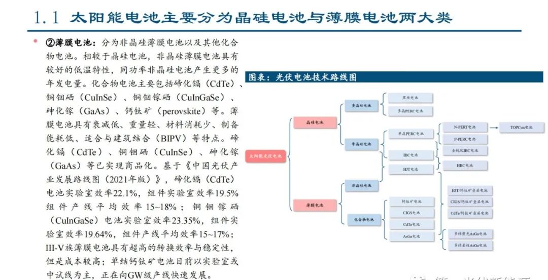1.1、太阳能电池主要分为晶硅电池与薄膜电池两大类