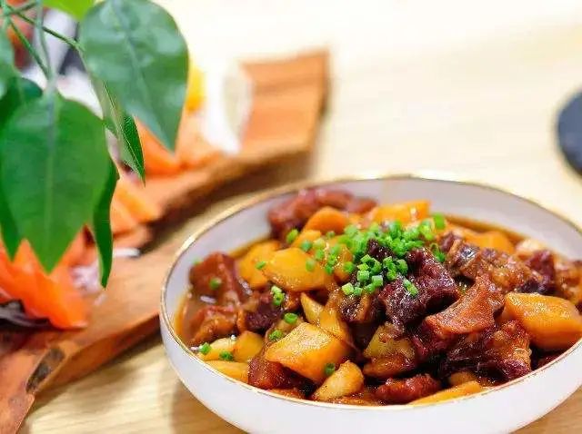 大米玉米片饭、土豆烧牛腩、青笋木耳、番茄蛋花汤