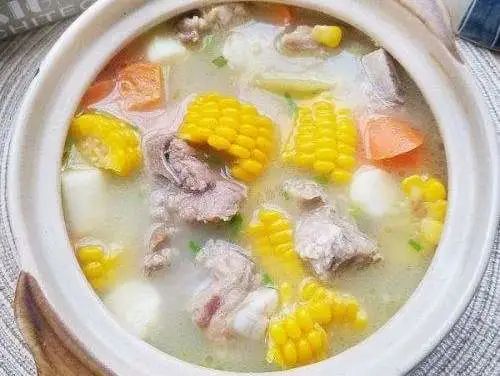 红薯米饭、芹菜肉末、玉米山药排骨汤