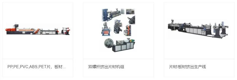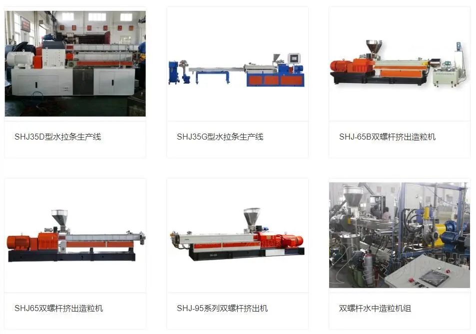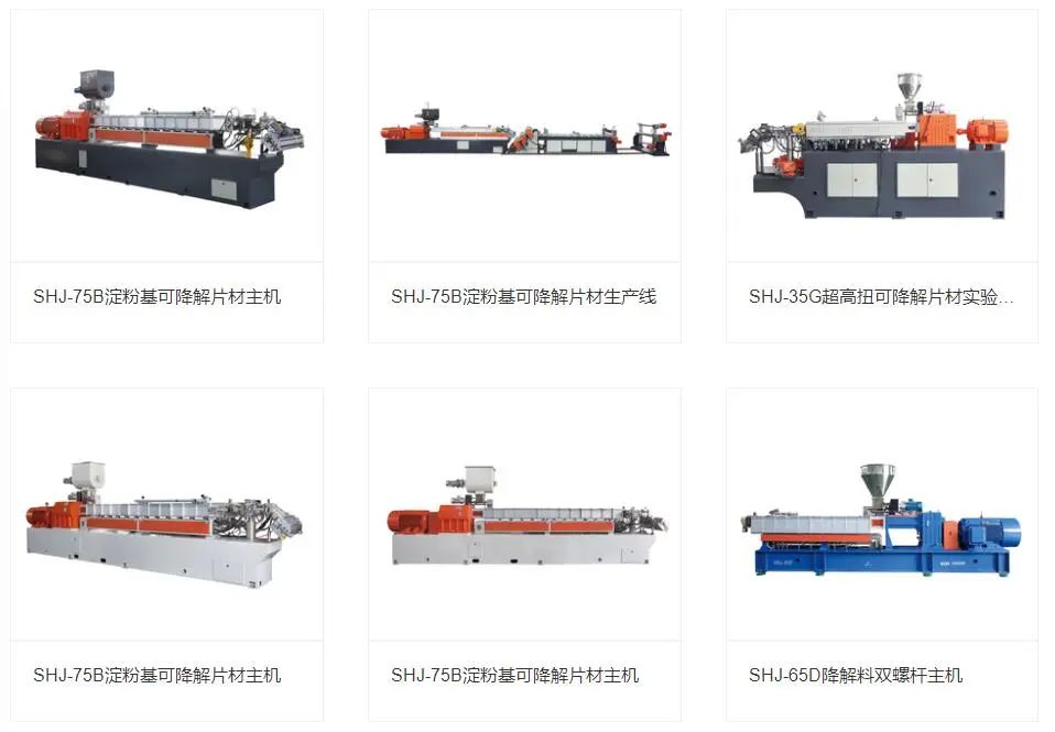 主营产品有:降解料专用双螺杆挤出造粒机,塑料片材成型生产线,高性能降解料挤出生产线,降解料单螺杆回收造粒生产线,单螺杆挤出生产线,三螺杆挤出生产线,双螺杆水下切造粒成产线。